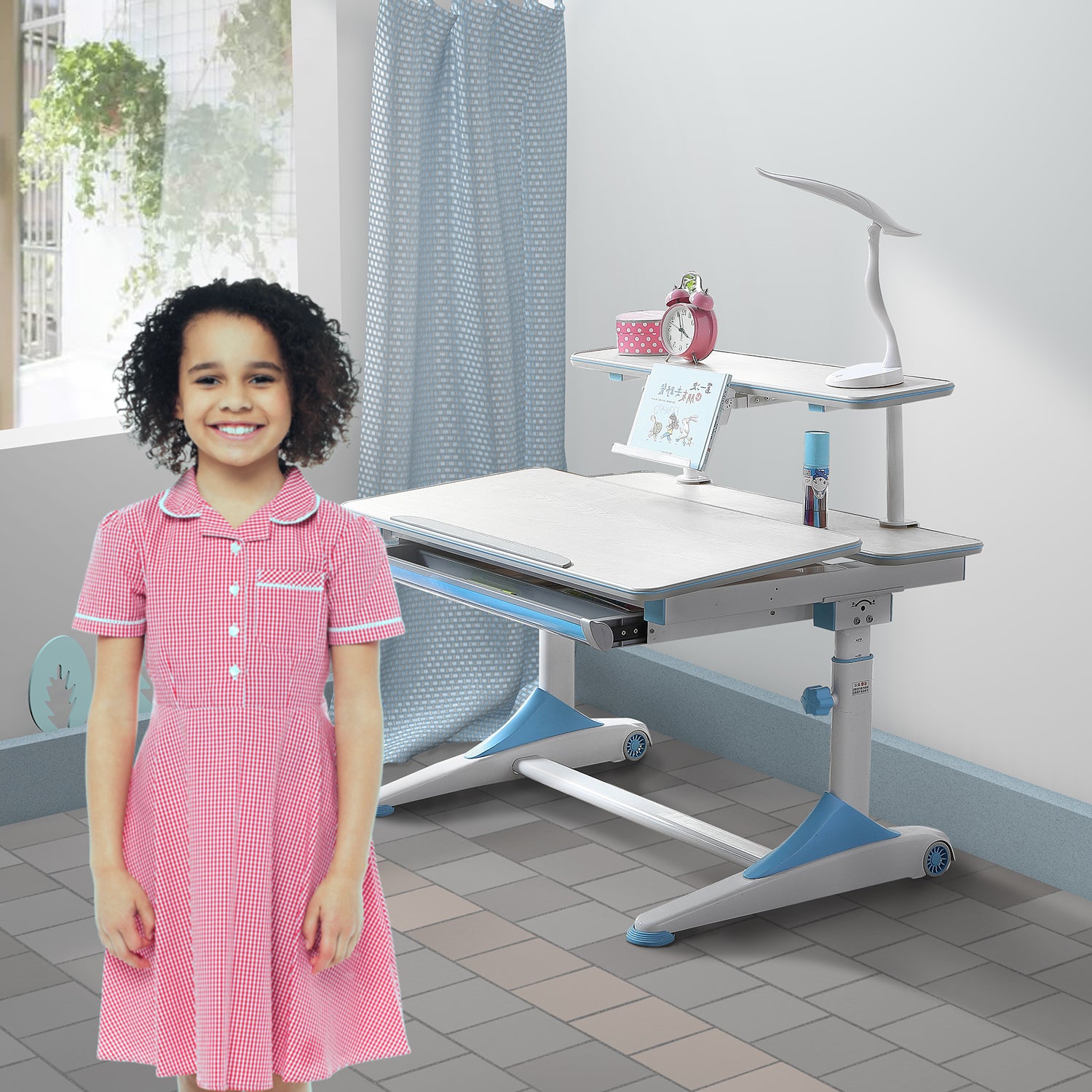 Create the perfect study space for your child with the new kids blue study desk with height adjustable table - ergonomic designed for child by FurnitureX. Our new kids blue study desk is designed to grow with your child, featuring a height-adjustable table for maximum comfort and an ergonomic design that promotes healthy posture. Crafted in a cheerful blue finish, this desk provides an inviting space for studying, reading, and creative activities. Its sturdy build ensures durability, while the adjustable height function allows it to adapt as your child grows, making it a long-lasting addition to their study corner. Perfect for creating a productive and fun learning environment.