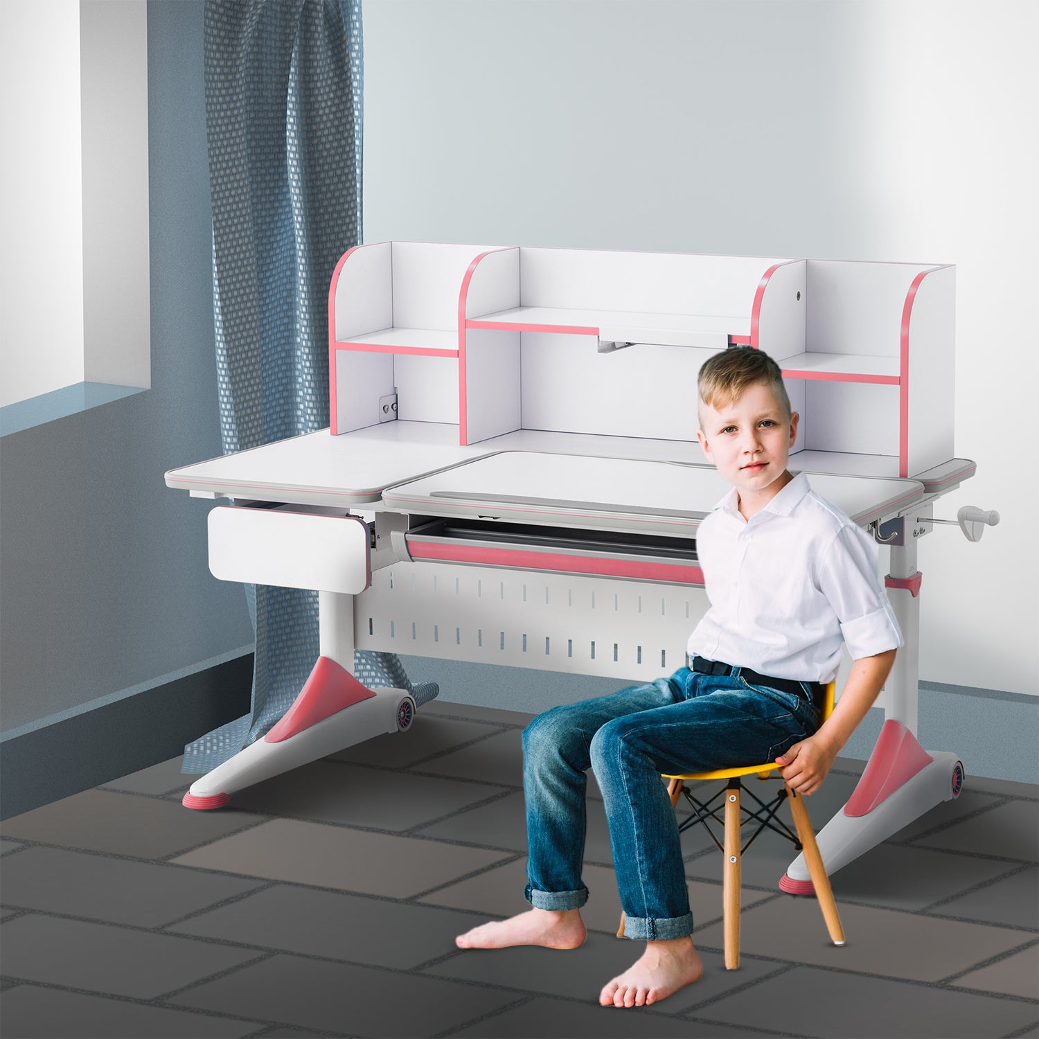 The New Kids Study Desk Pink with Open Book Shelf - Angle Adjustment for the Table Top by FurnitureX is designed to create the perfect learning environment for your child. Featuring a spacious open bookshelf, it offers easy access to books, stationery, and study essentials. The angle-adjustable tabletop allows for comfortable reading, writing, and drawing, helping kids maintain the correct posture. With its charming pink finish and durable build, this desk combines functionality with style - making study time more enjoyable and organized.