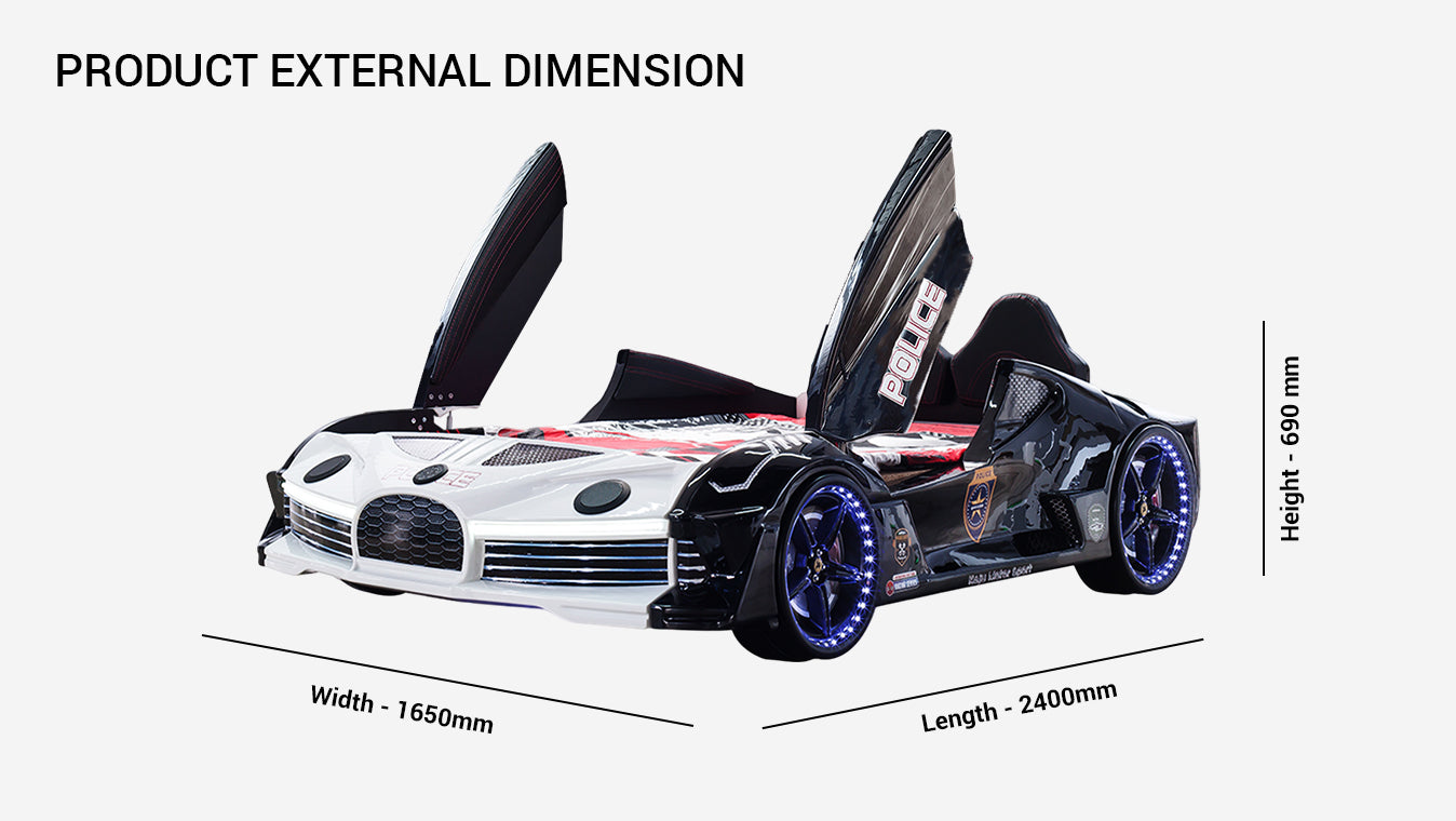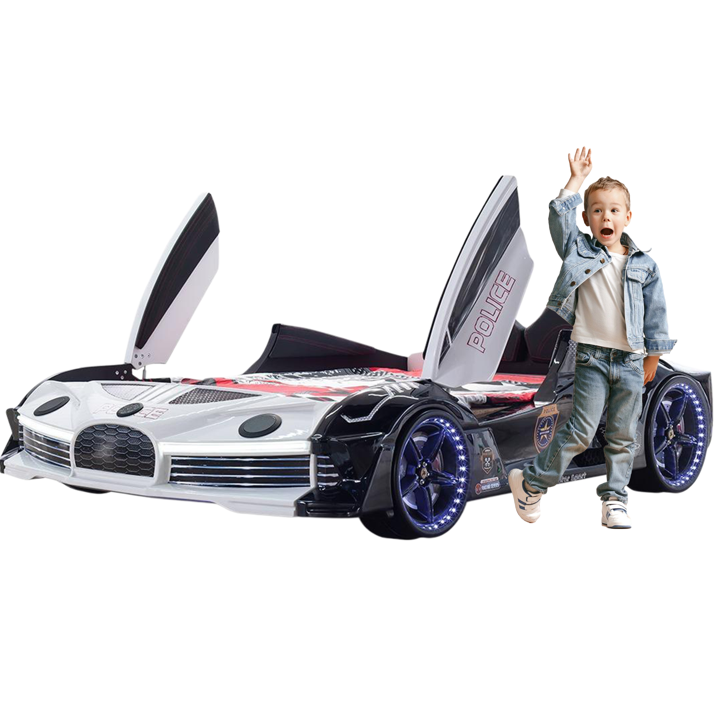 This sleek and premium kids' car bed is perfect for adding a fun and stylish element to any child’s bedroom while ensuring durability and comfort.
