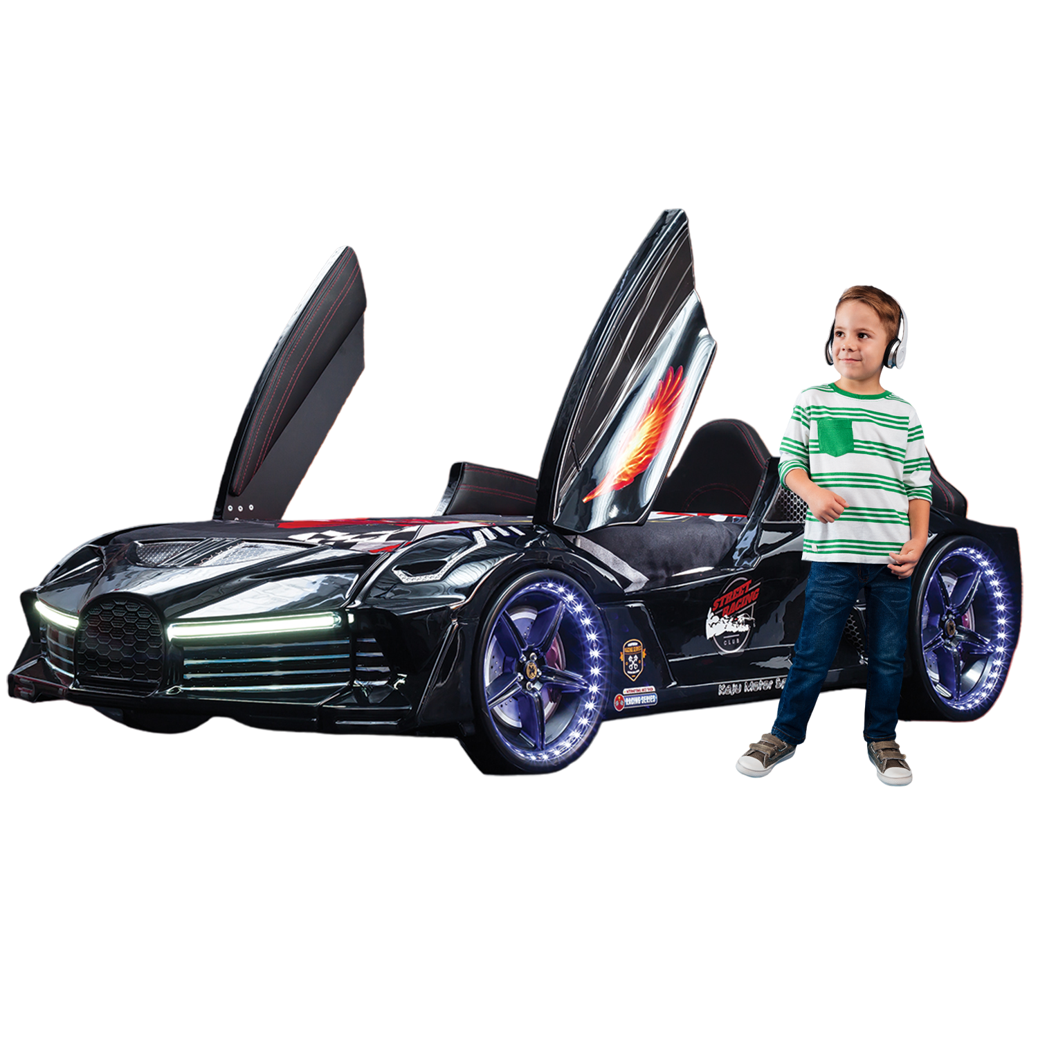 With a sleek sports car design, real LED headlights, engine sounds, and opening doors – it’s more than just a bed, it’s a full-on racecar experience made just for kids. The soft faux leather interior and safe, sturdy build mean your little one gets the best of both worlds: comfort and adventure.